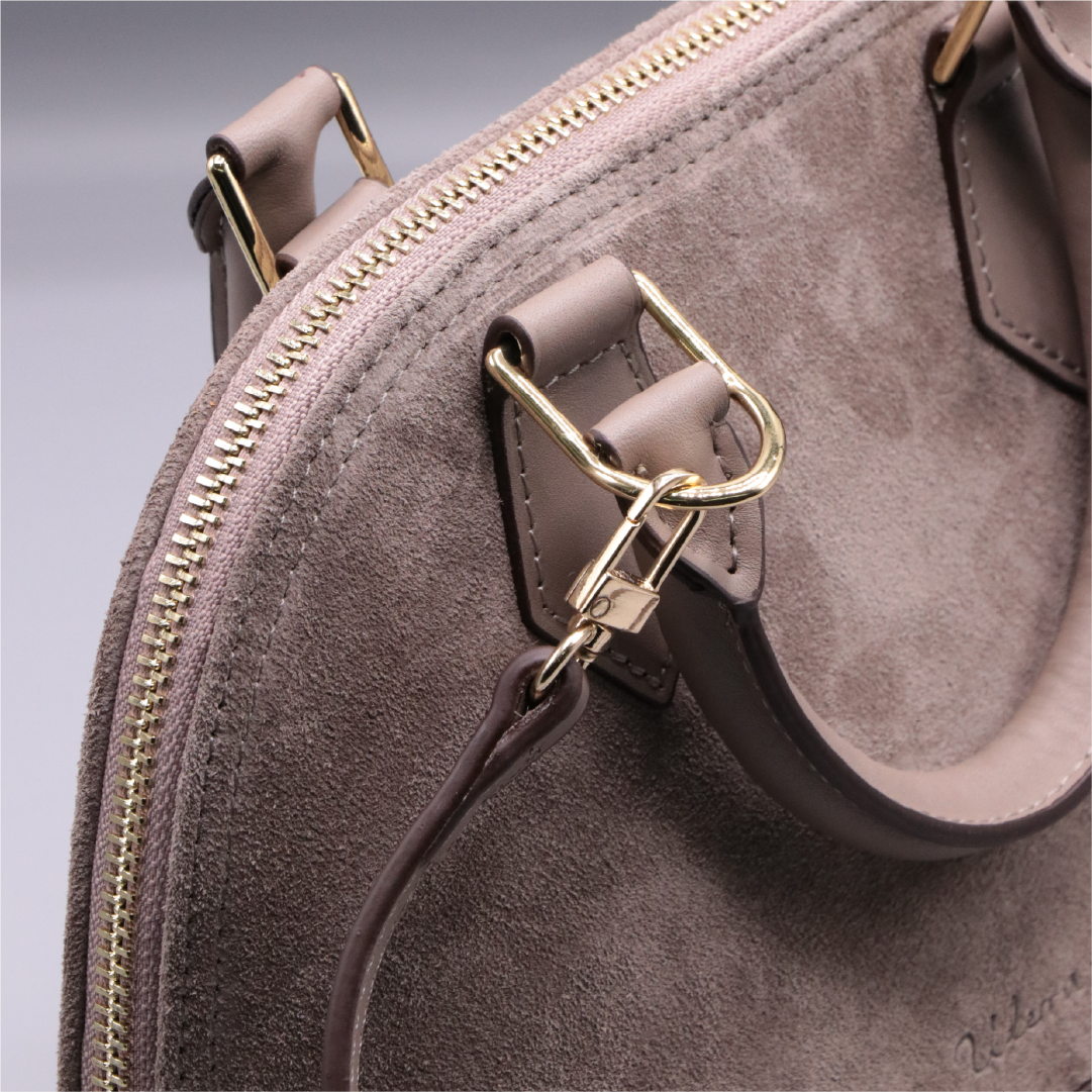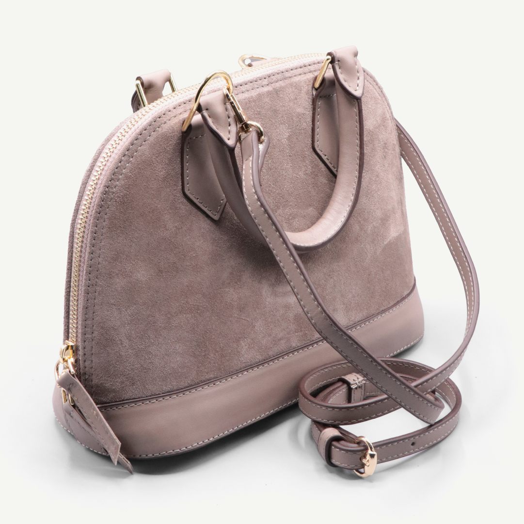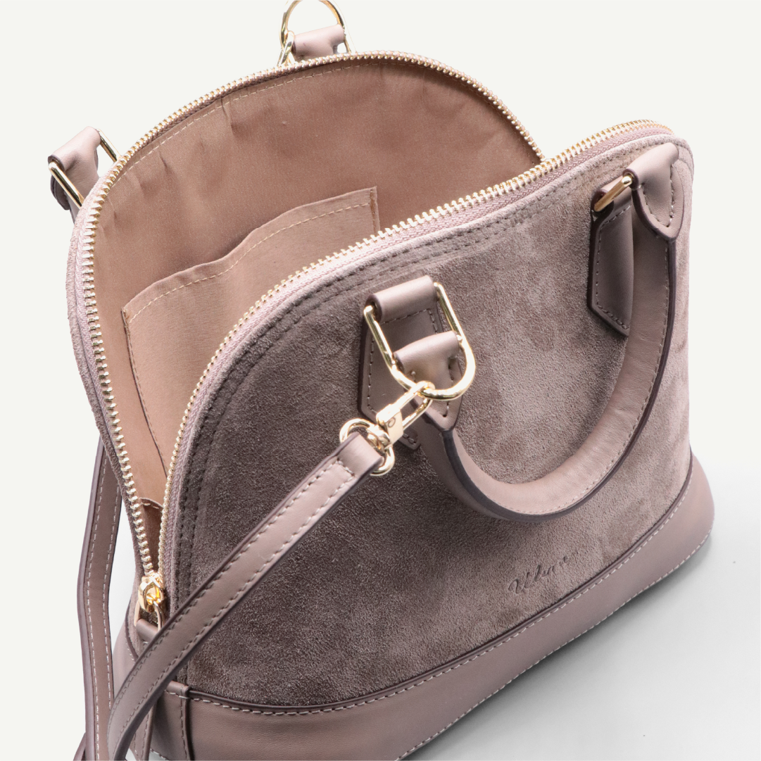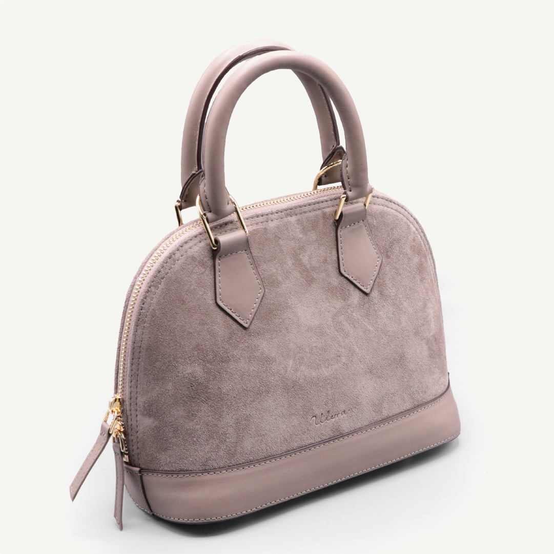 Yuvarlak hatlı formu, alt kısımdaki deri detayları ve altın renkli aksesuarlarıyla zamansız bir şıklık sunar. Çıkarılabilir ve ayarlanabilir uzun askısı sayesinde elde, omuzda veya çapraz kullanım imkânı sağlar. İç kısmı astarlı olup, günlük eşyalarınızı düzenli taşımanıza yardımcı olur.