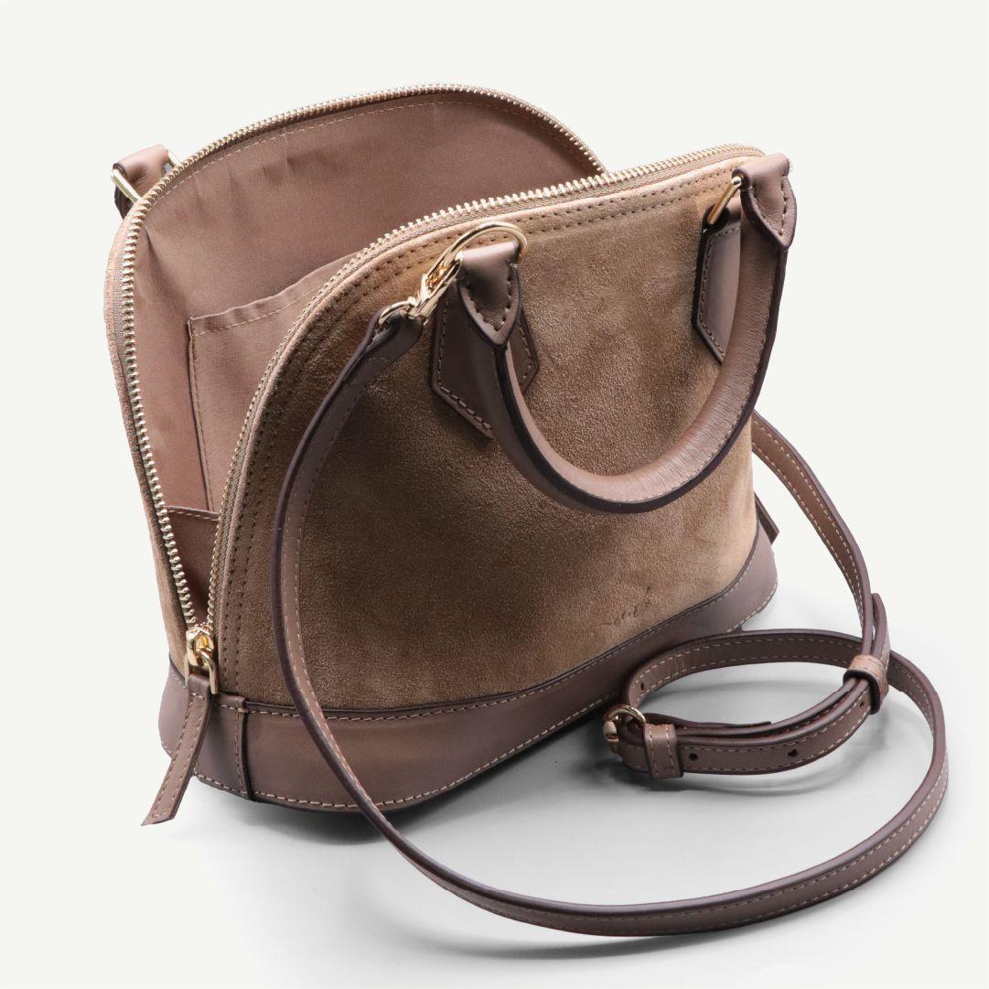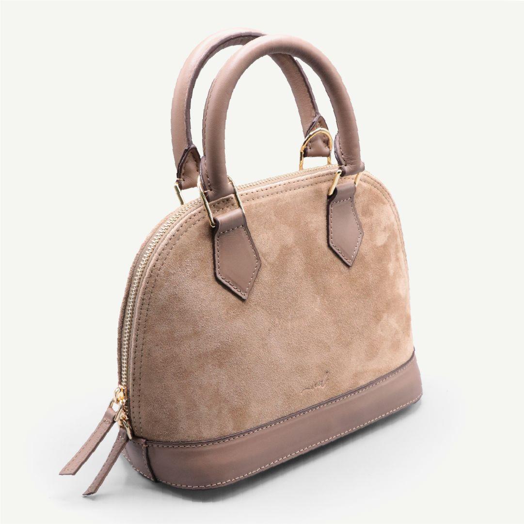 Yuvarlak hatlı formu, alt kısımdaki deri detayları ve altın renkli aksesuarlarıyla zamansız bir şıklık sunar. Çıkarılabilir ve ayarlanabilir uzun askısı sayesinde elde, omuzda veya çapraz kullanım imkânı sağlar. İç kısmı astarlı olup, günlük eşyalarınızı düzenli taşımanıza yardımcı olur.