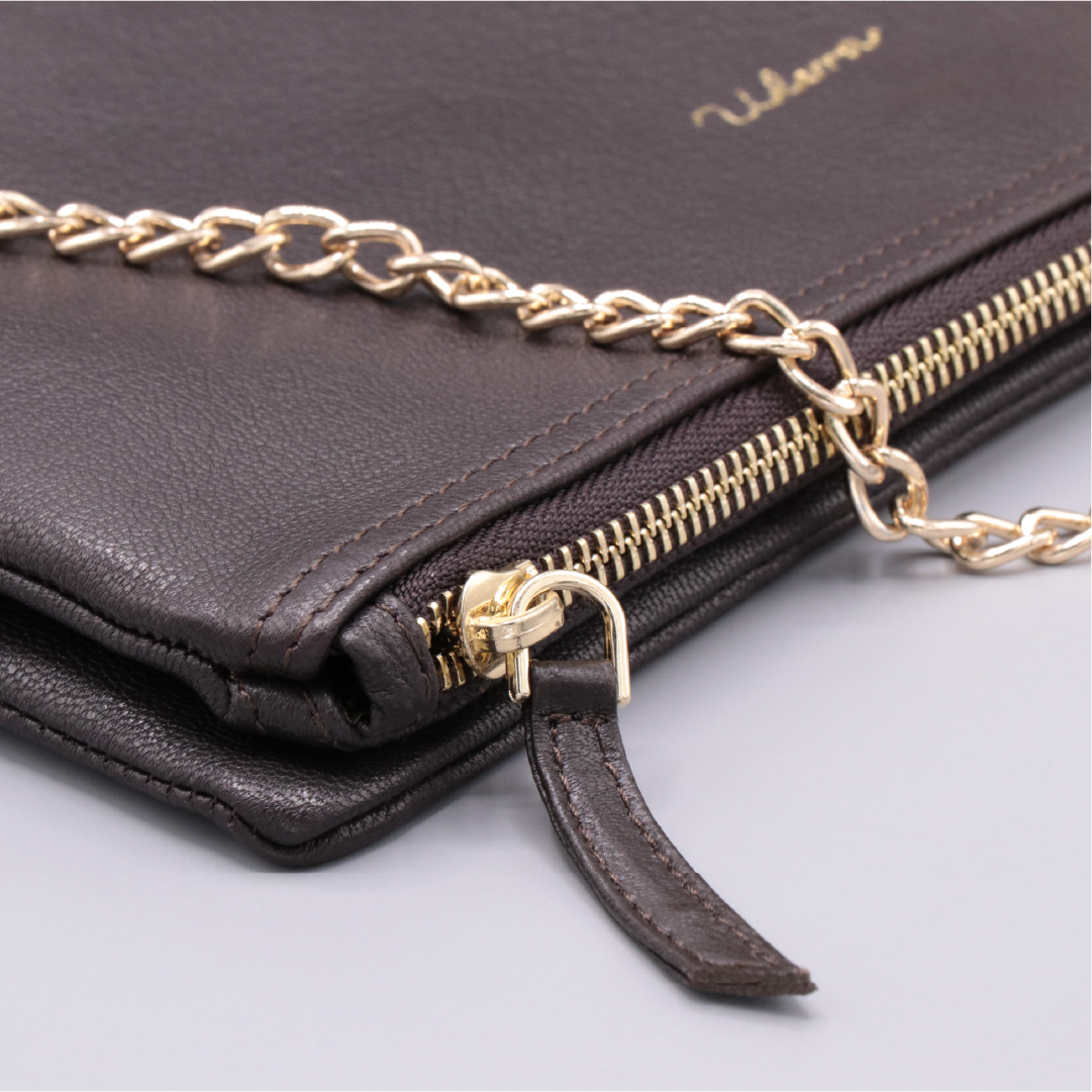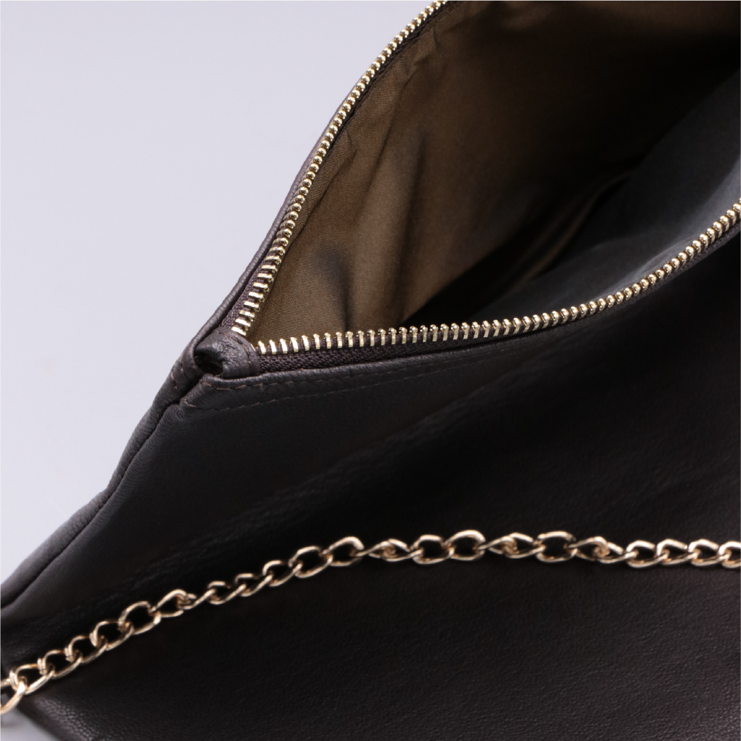 📏 Teknik Detaylar • Materyal: %100 Hakiki Deri • Astar: Kaliteli pamuk astar • Ölçüler: 30x 6 cm • Renk: Kahverengi • Kapanış: Fermuarlı ana bölüm + kapak • Askı: Ayarlanabilir ve çıkarılabilir deri askı • Ek Detay: Altın renk metal zincir aksesuar • Kullanım: Omuz, çapraz ve elde taşımaya uygun • Üretim: El işçiliği