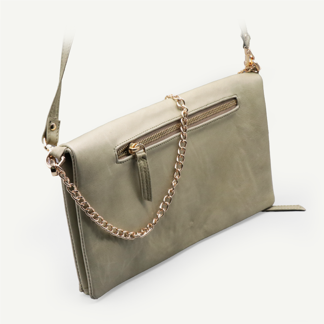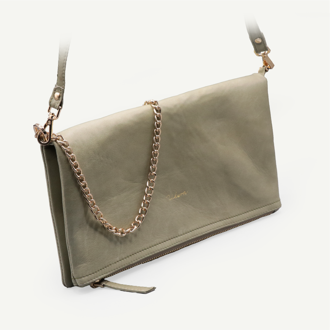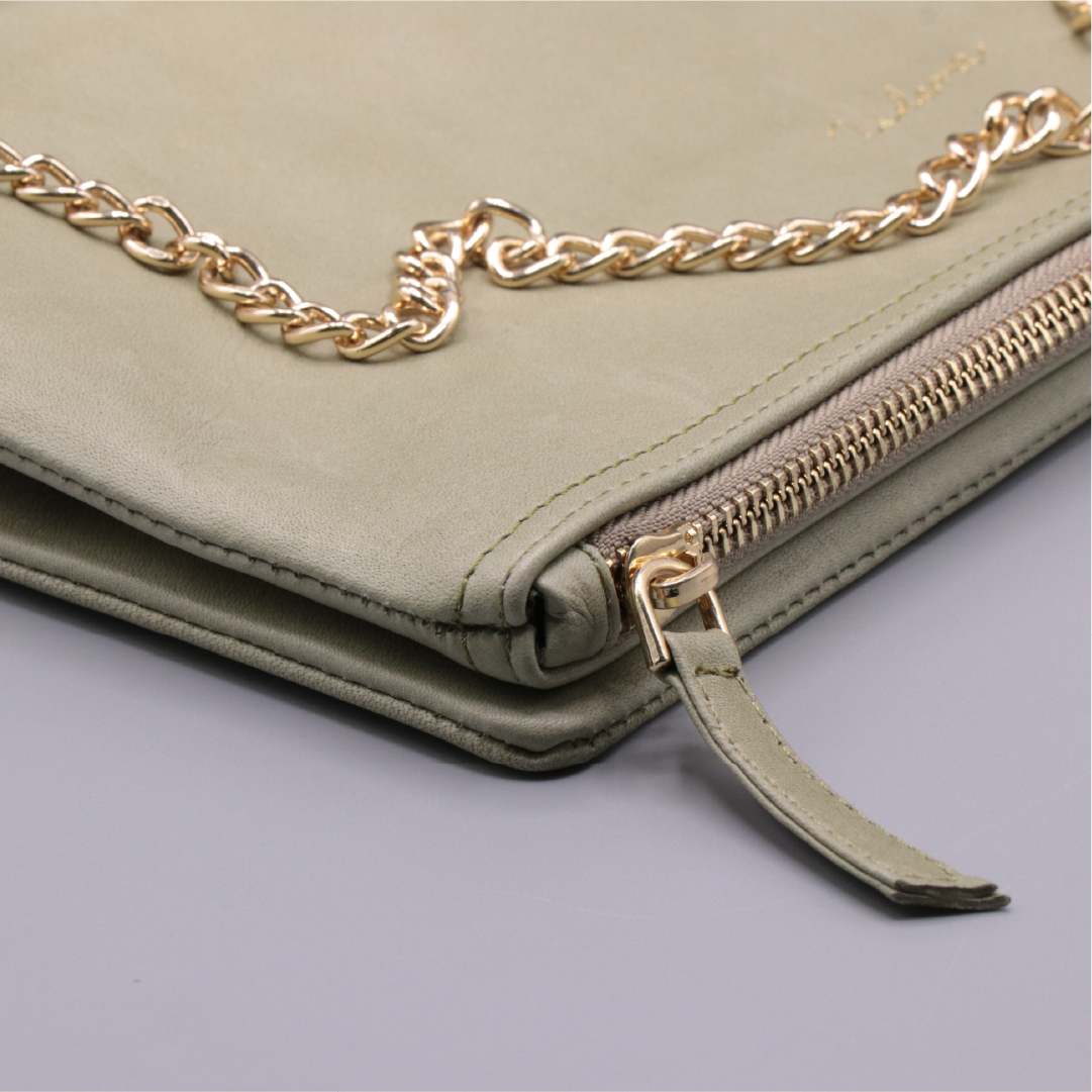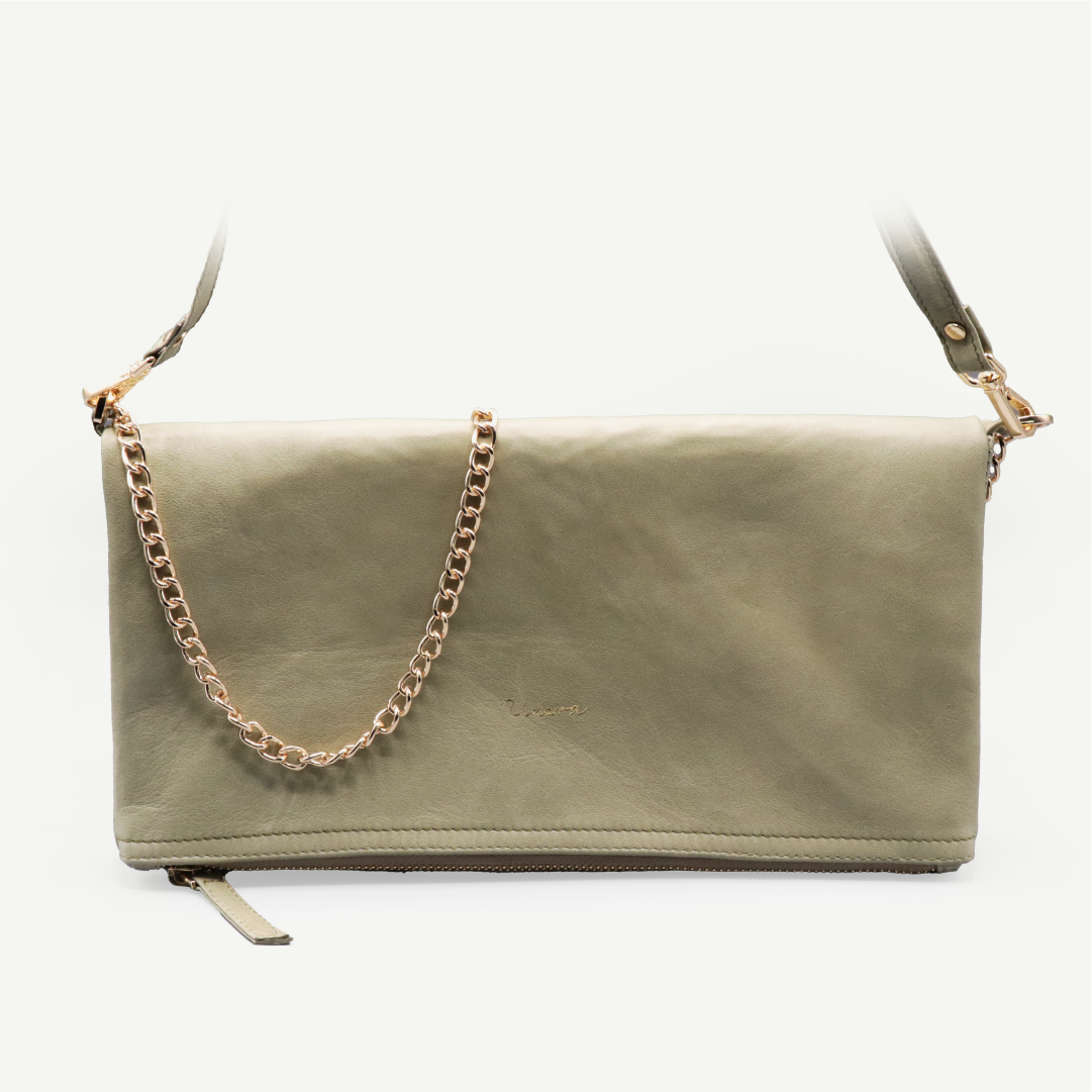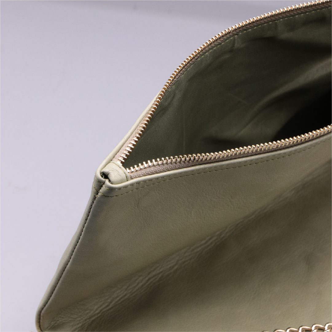 📏 Teknik Detaylar • Materyal: %100 Hakiki Deri • Astar: Kaliteli pamuk astar • Ölçüler: 30x 6 cm • Renk: Çağla Yeşili • Kapanış: Fermuarlı ana bölüm + kapak • Askı: Ayarlanabilir ve çıkarılabilir deri askı • Ek Detay: Altın renk metal zincir aksesuar • Kullanım: Omuz, çapraz ve elde taşımaya uygun • Üretim: El işçiliği