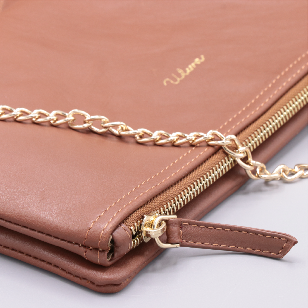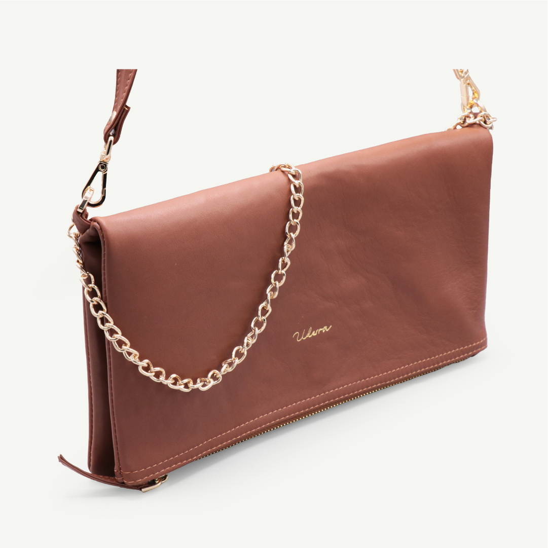 📏 Teknik Detaylar • Materyal: %100 Hakiki Deri • Astar: Kaliteli pamuk astar • Ölçüler: 30x 6 cm • Renk: A.Kahverengi • Kapanış: Fermuarlı ana bölüm + kapak • Askı: Ayarlanabilir ve çıkarılabilir deri askı • Ek Detay: Altın renk metal zincir aksesuar • Kullanım: Omuz, çapraz ve elde taşımaya uygun • Üretim: El işçiliği