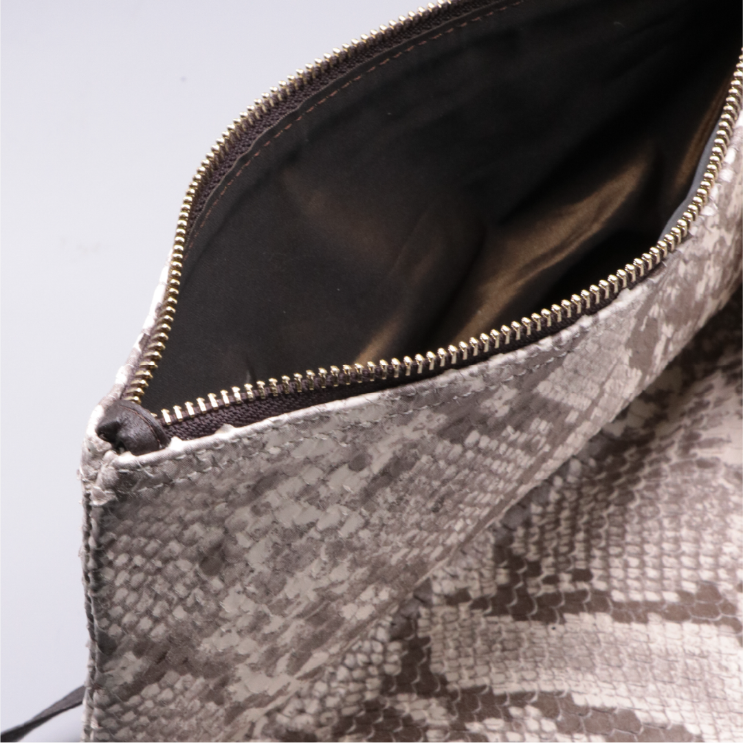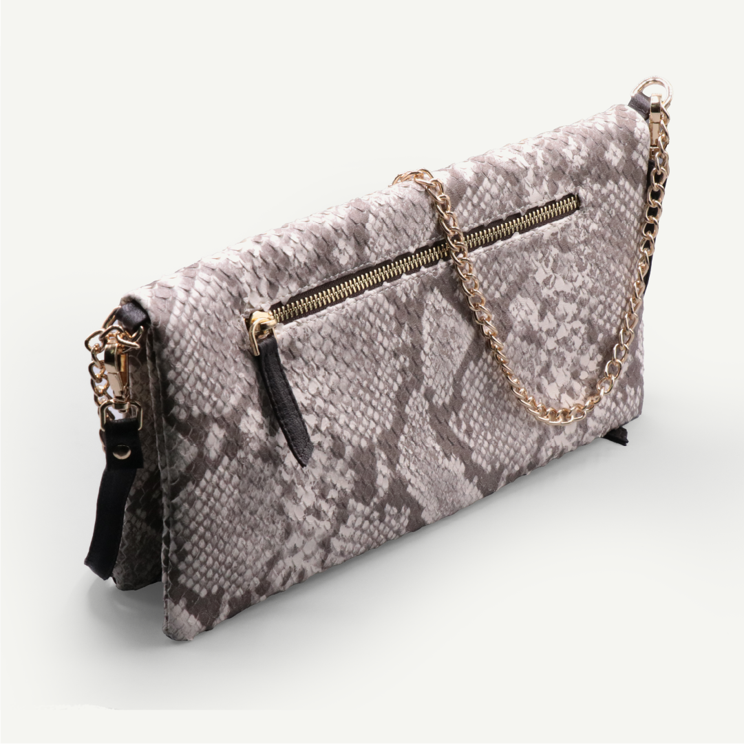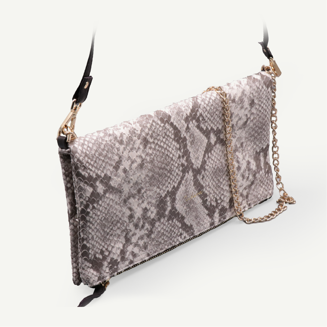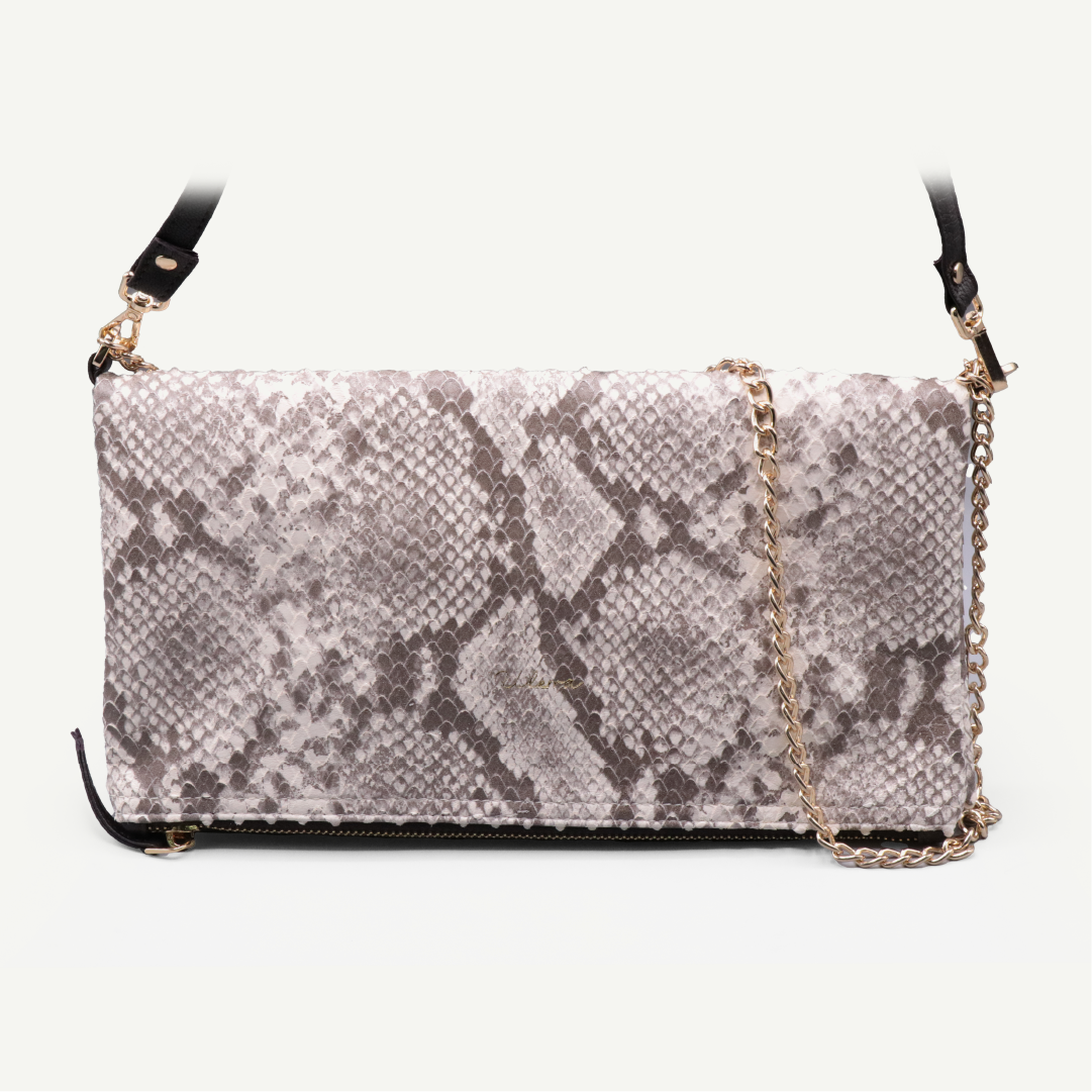 📏 Teknik Detaylar • Materyal: %100 Hakiki Deri • Astar: Kaliteli pamuk astar • Ölçüler: 30x 6 cm • Renk: Bej Yılan Baskı • Kapanış: Fermuarlı ana bölüm + kapak • Askı: Ayarlanabilir ve çıkarılabilir deri askı • Ek Detay: Altın renk metal zincir aksesuar • Kullanım: Omuz, çapraz ve elde taşımaya uygun • Üretim: El işçiliği