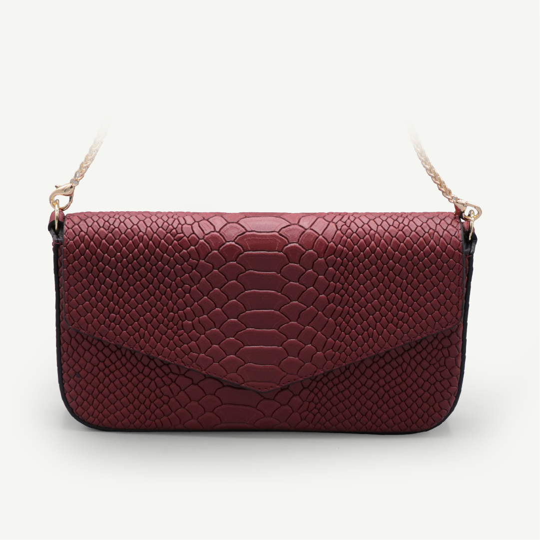 Uderra Kadın Hakiki Deri Bordo Piton Baskılı Omuz Çantası - S1KZ0325 Bordo Piton Baskılı Omuz Çantası